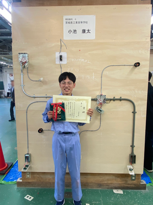 10月15日(水)に、宮城県立大崎高等技術専門校を会場に開催された令和7年度第24回「高校生ものづくりコンテスト」宮城県大会電気工事部門 兼 高校生ものづくりコンテスト2026東北大会電気工事部門宮城県予選会に、本校から電気科1年生の小池康太さんと及川世さんの2名が出場しました。その結果、電気科1年生の小池康太さんがみごと第1位となり、令和8年度に開催される東北大会への出場を決めました。おめでとうございます!