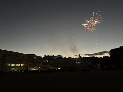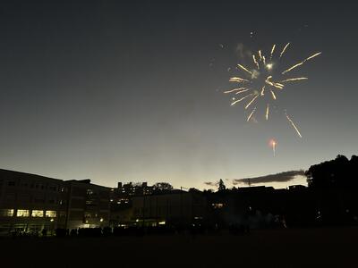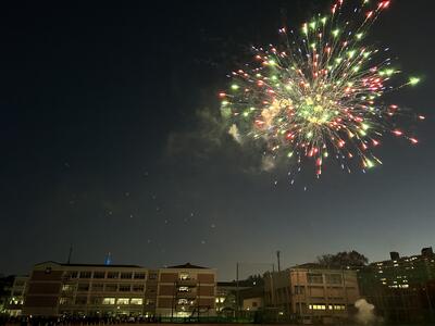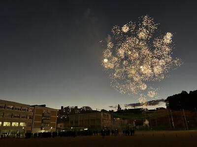 この大輪の花火は、本校が所在する米ヶ袋町内会様、本校PTAからのご支援により打ち上げることができました。