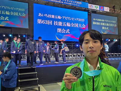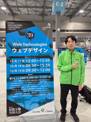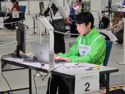 10月17日(金)から20日(月)まで、Aichi Sky Expo(愛知県国際展示場)を中心に開催された第63回技能五輪全国大会において、ウェブデザイン職種競技に出場した本校情報技術科3年生の中里結太さんがみごと二年連続銀賞に輝く快挙を成し遂げました。おめでとうございます!ウェブデザイン職種競技は、競技課題に基づき、ウェブサイトの設計・構築に関わる技能について競技を行うもので、競技時間は3日間で8時間30分にも及びます。全国から選出された20名の出場者とともに限られた時間のなかで作業スピードや正確さを競い合い、中里さんはみごと今回の結果をつかみ取ることができました。
